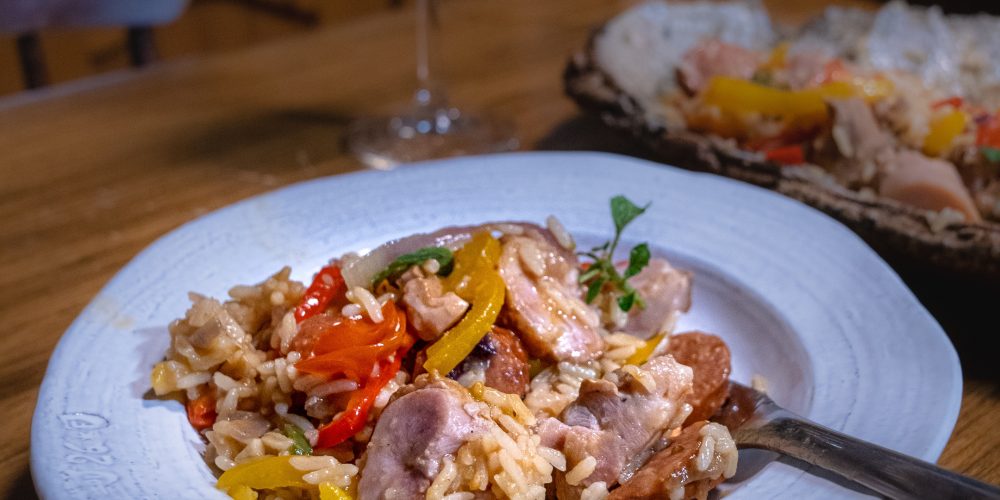 Microwave the rice according to the packet’s instructions. Heat the olive oil in a pan or cast iron pot and add the onion and garlic and fry for two minutes, then add the chorizo and cook for 2-4 minutes till the fat is released. Add the rice, capsicums and jalapenos, stir and then pour in the stock, salt and pepper and cook for five minutes. The mixture will thicken and start to stick to the pan. Lastly, add the tomatoes and the chicken and stir gently till warmed through.